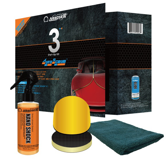 NANOSKIN AUTOSCRUB System works fast and achieves professional results with the new advanced rubber polymer technology, which replaces the use of clay bars. With either dual action orbital polisher or hand application, it safely and easily removes paint over spray, water spots, fresh tree sap, rail dust and other bonded surface contaminants from the surface of automotive paint, glass, moldings and plastic. Unlike the clay bar, the AUTOSCRUB can be cleaned by simply rinsing off the accumulated contaminates with water. If you drop the AUTOSCRUB on the ground, no worries, just rinse the sponge pad clean and you're ready to keep using it. Easy glides allows for sturdy and controlled handling, unlike clay bars where constant reshaping is required.