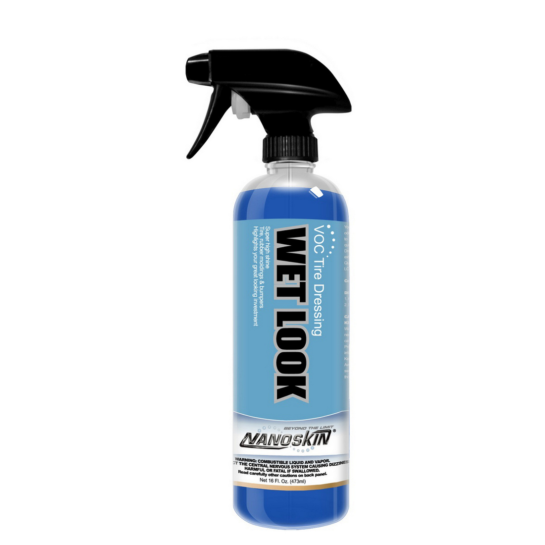 You have waxed and polished your vehicle, removed stains and odors and looked after the upholstery and leather. Now it's time to tackle the shine of your tires. Nothing gets noticed more quickly after waxing than your glossy tires. Nanoskin Tire dressing is a super high shine, silicone based, dressing for exterior surfaces. Brush or sponge application is recommended. Quick dry, low sling-off formula works great on wet tires. It really completes "the look" that auto detailers want.