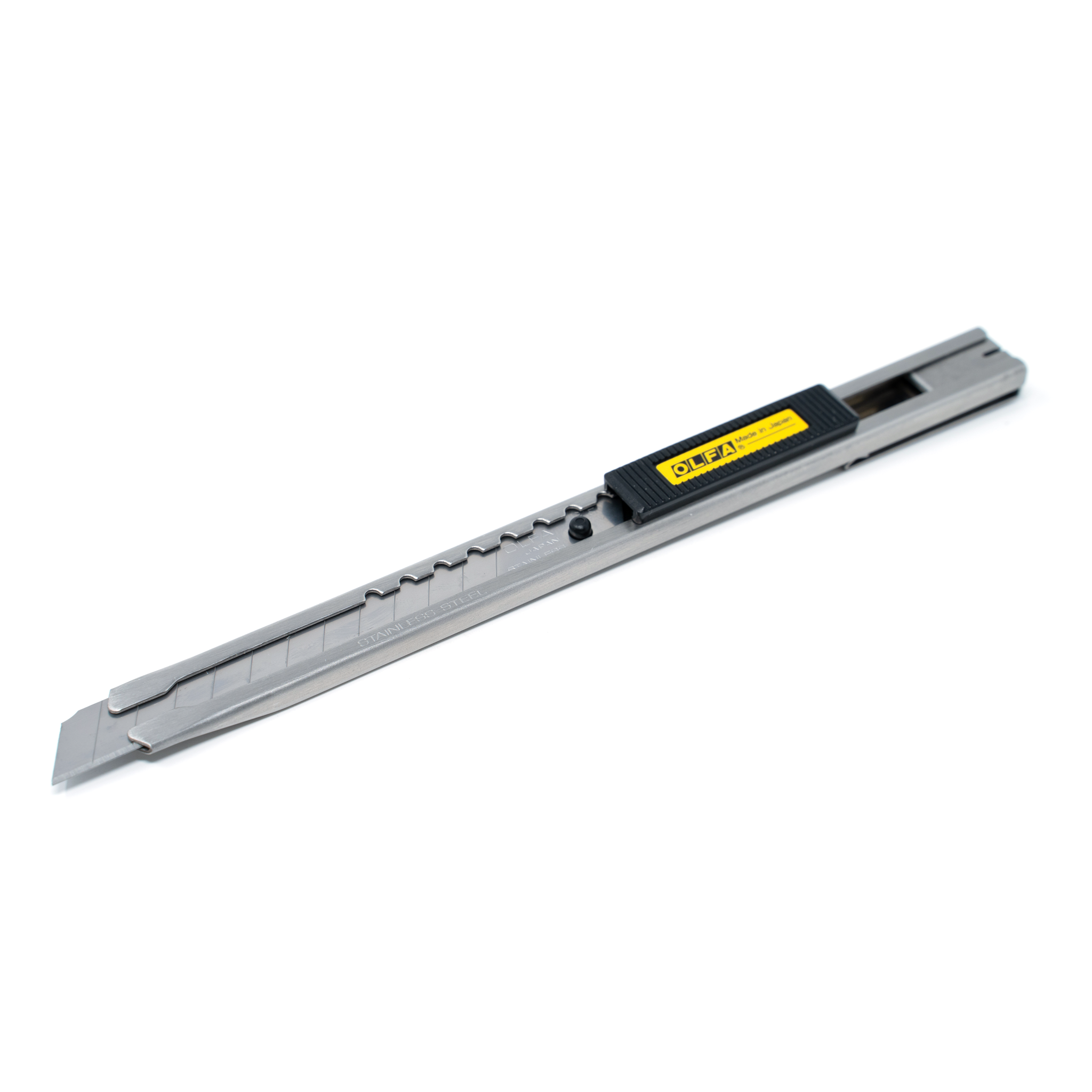 This knife comes pre-loaded with a 9mm ABS Stainless Steel Snap-Off Blade. It is ideal for precision cuts for window tinting and paper hanging, while also delivering precise cuts through vinyl and more. The SVR-s2 is also great for cutting through packaging, shrink wrap, caulking, foam board, and other materials.