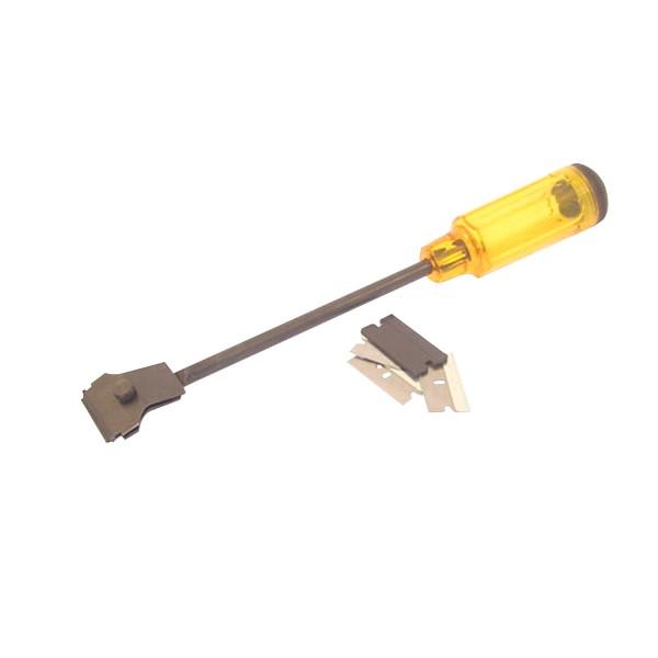 This scraper features a thumb screw that holds the blade in place more tightly.