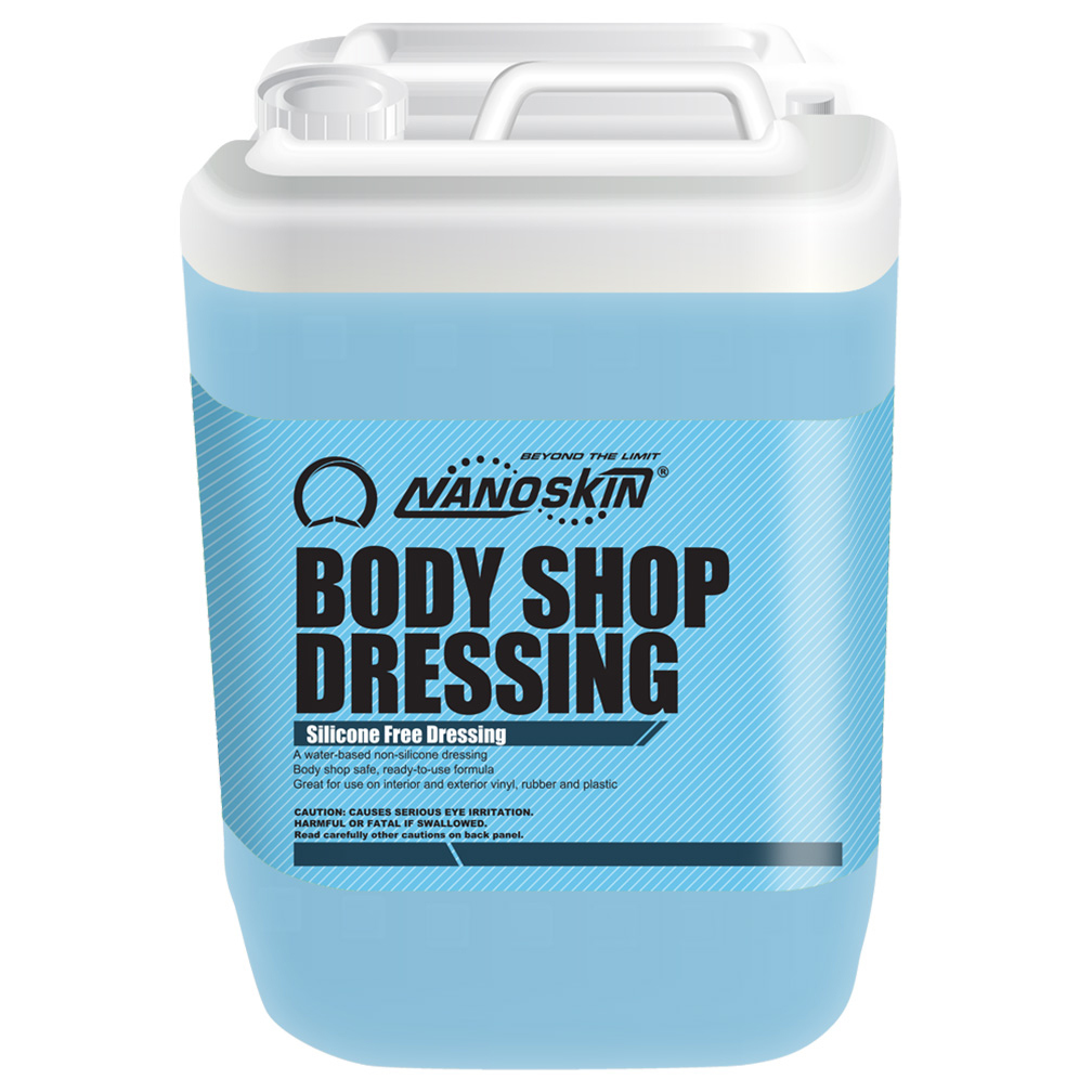 Nanoskin BODY SHOP DRESSING is the perfect water-based non-silicone dressing for interior and exterior vinyl, rubber and plastic. This body shop safe product will deepen the color and enhance the luster of tires for a classic, finished look. It is ready-to-use and adds instant gloss to vinyl, rubber and plastic. VOC compliant and body shop safe.