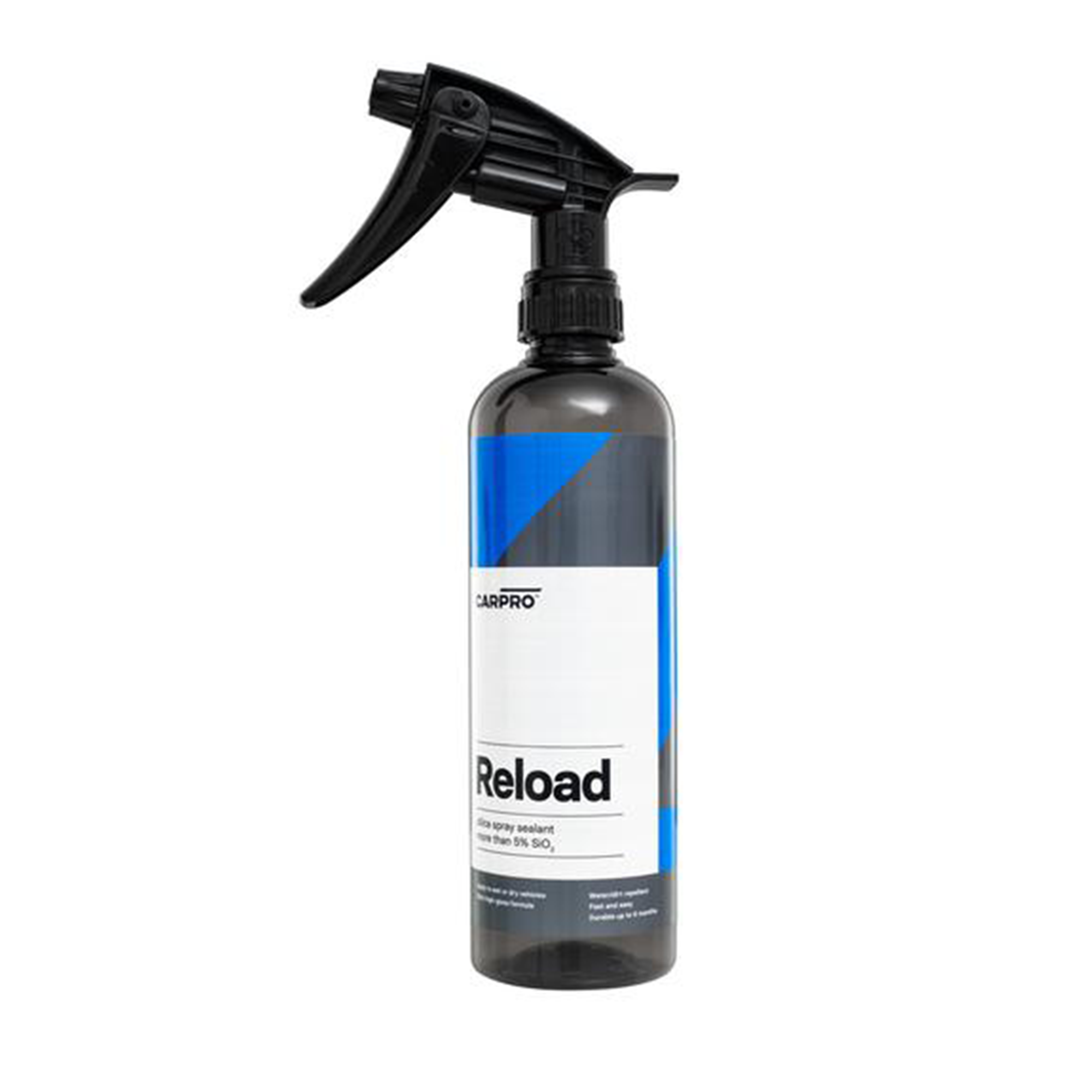 Reload packs the glass-like gloss, hydrophobicity and dirt repellency of Silica Nanotechnology in a convenient spray- on, wipe-off sealant.