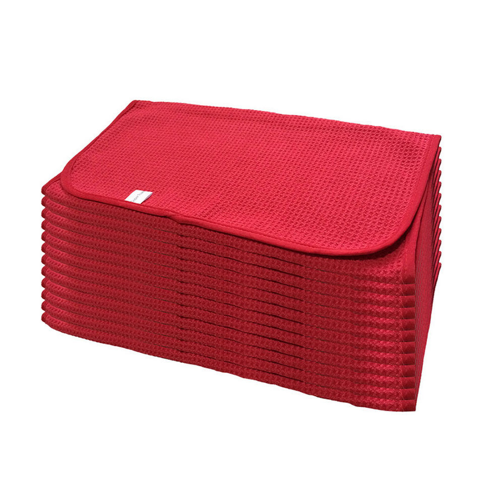 Nanoskin Waffle Wave Microfiber Waffle Towels 16" x 24" 360GSM (Pack of 12): Red