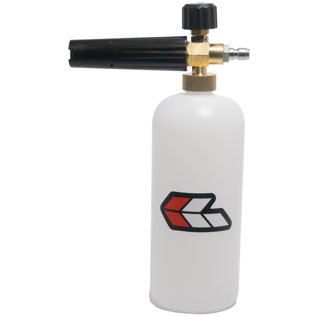 Upgrade your car wash and cut down on scratches and swirls with this snow foam lance! Made of high quality brass and featuring a one-liter bottle, this lance is fully adjustable, ensuring that you are using exactly the right amount of product in every wash. The bottle features markings in increments of 100 ml, allowing you to accurately dilute your favorite snow foam, such as AM Foam - Wax Safe Snow Foam or Gtechniq W4 Citrus Foam.